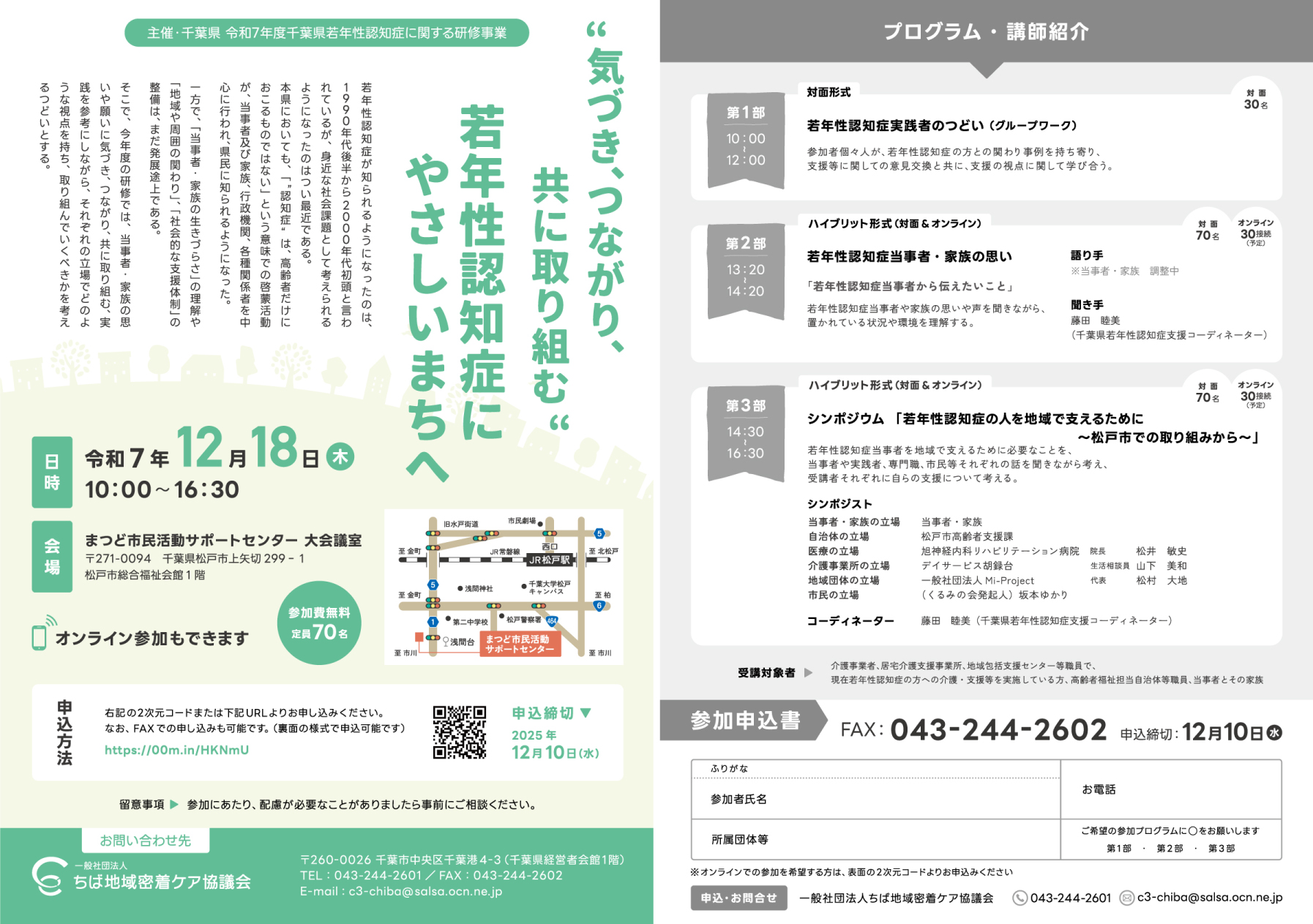 ちば地域密着ケア協議会より令和7年度若年性認知症に関する研修事業